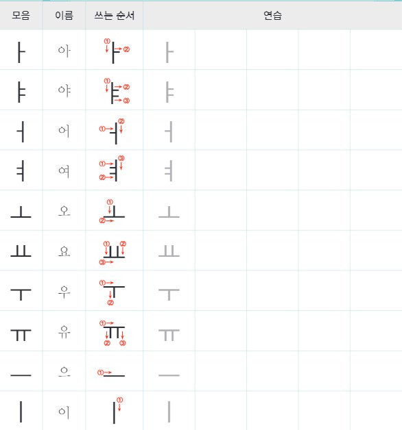 4. 모음쓰기 연습(Vowel Write Exercise)