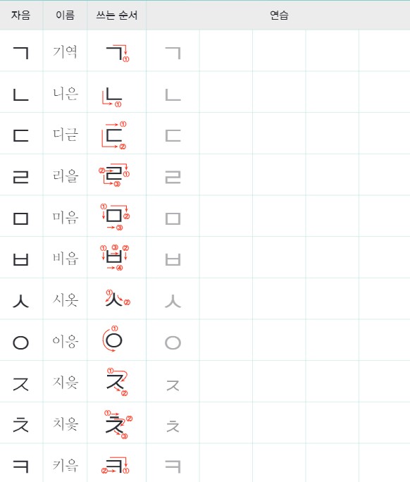 3. 자음 쓰기 연습(Consonant Write Exercise)